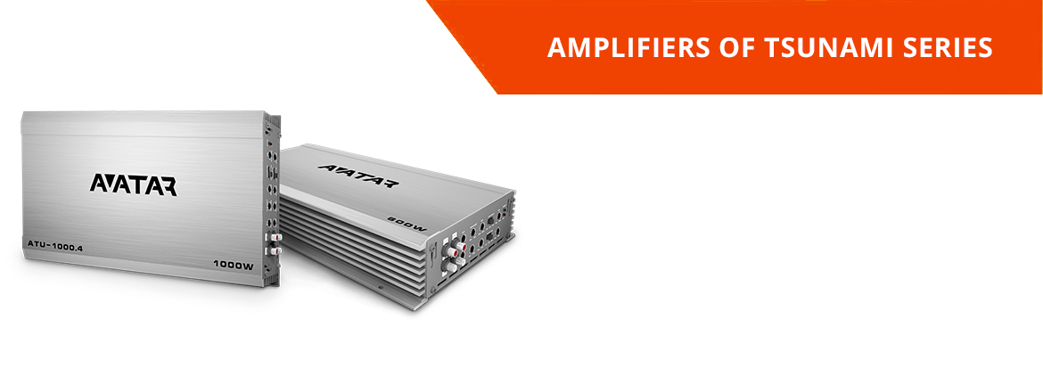 • The TSUNAMI series is represented by two full-range four-channel class-AB amplifiers with a total output power of 600 and 1000 watts, and five single-channel class-D amplifiers with a total output power varied from 500 to 3500 watts! Strict design, high output power and built-in advanced filters make these models of amplifiers an excellent solution for building loud and high-quality audio system in the car. Die-cast aluminum body has a high durability and allows efficient heat dissipation.